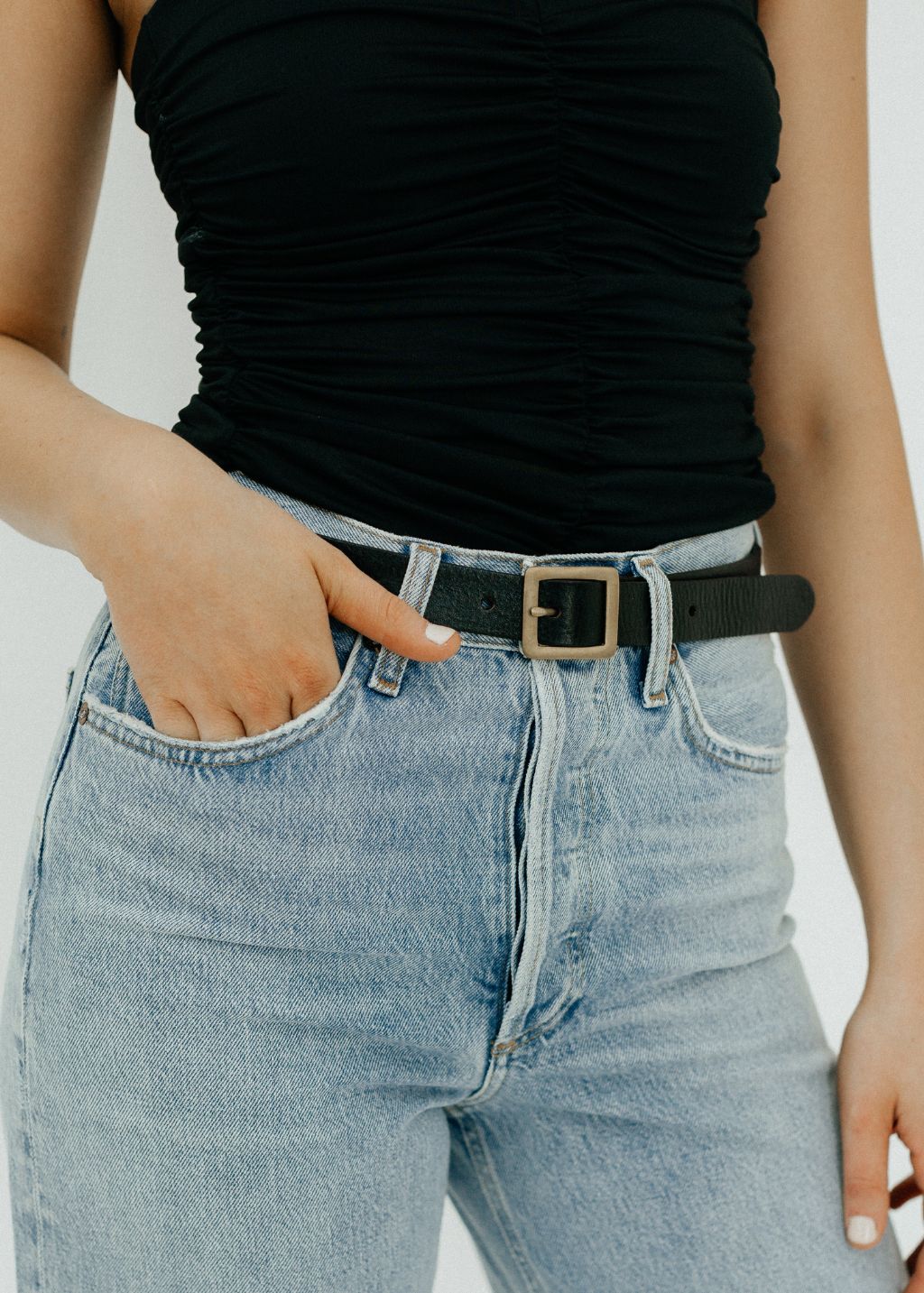 DePalma Leather Quadro Belt in Blk/Brass
