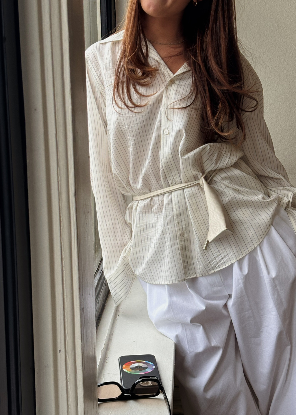 Denimist Cropped Button Front Shirt in White