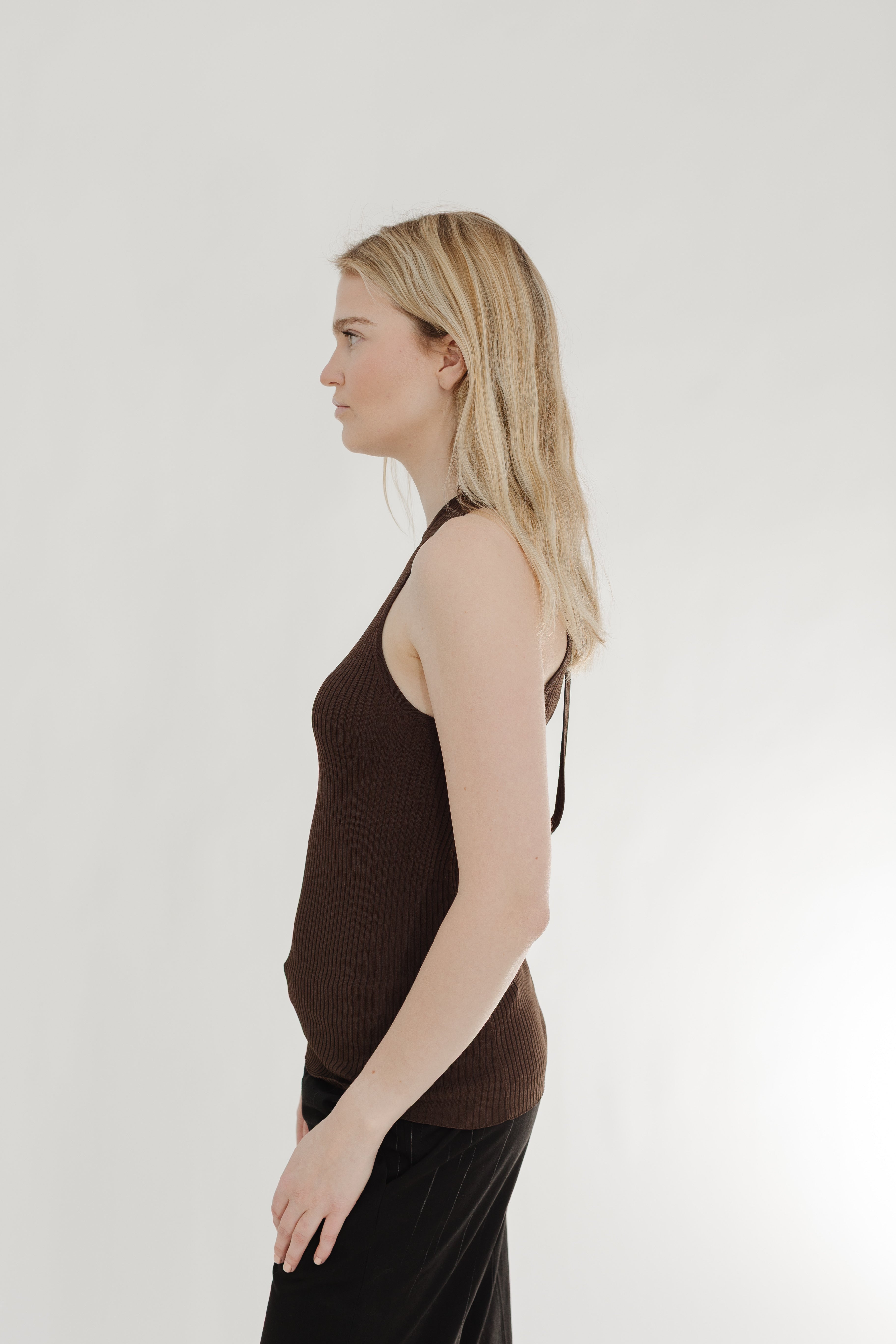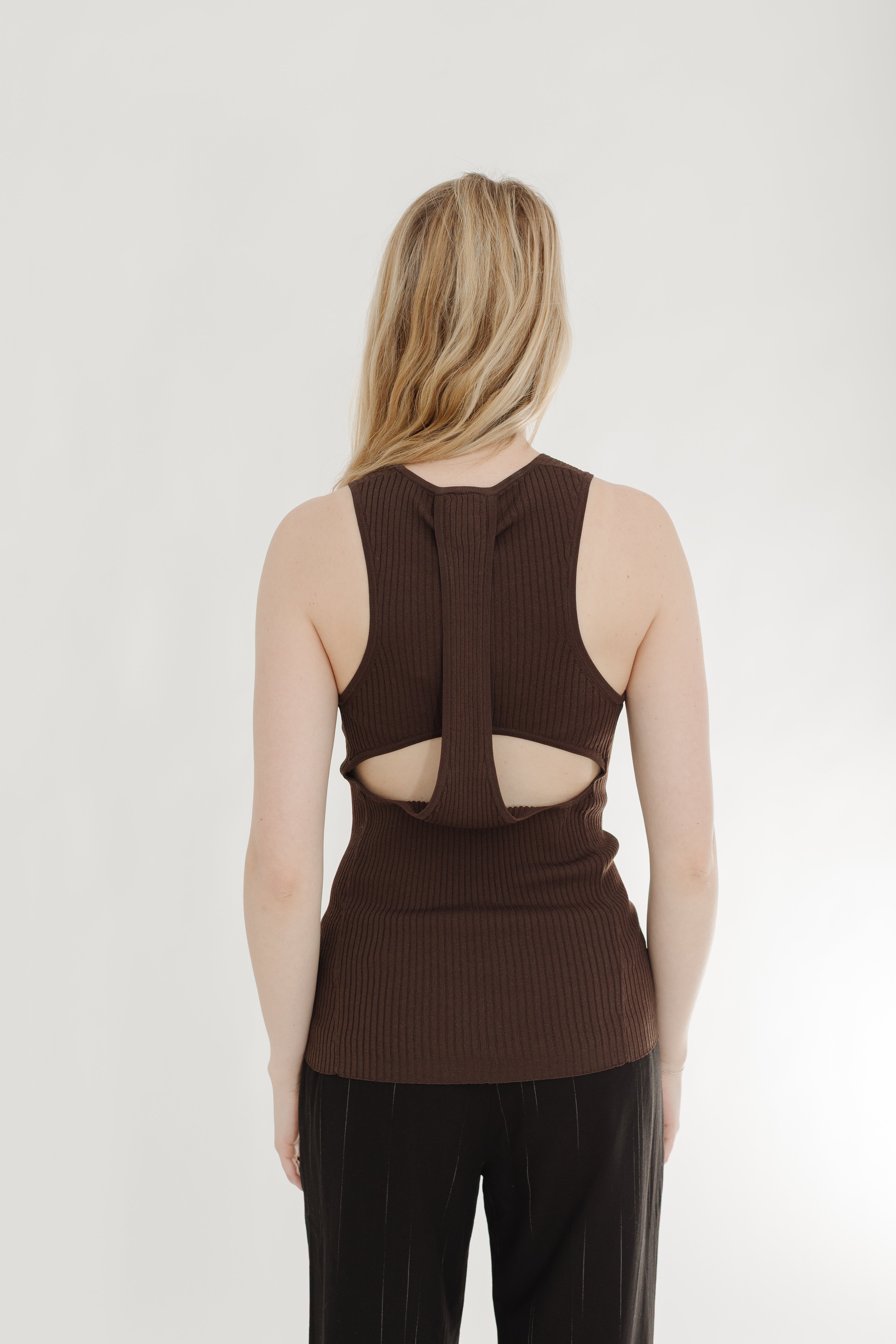 Tibi Ribbed Sweater Cut Out Tank in Brown