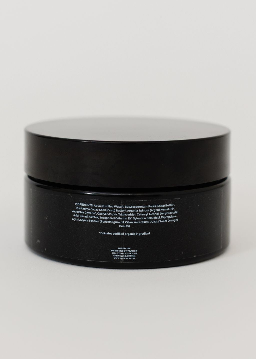 INGREDIENTS: Aqua (Distilled Water), Butyrospermum Parkii (Shea) Butter*, Theobroma Cacao Seed (Coco) Butter*, Argania Spinosa (Argan) Kernel Oil*, Vegetable Glycerin*, Caprylic/Capric Triglyceride*, Cetearyl Alcohol, Dehydroacetic Acid, Benzyl Alcohol, Tocopherol (Vitamin E)*, Sytenol A Bakuchiol, Dipropylene Glycol, Styrax Benzoin (Benzoin) gum oil, Citrus Aurantium Dulcis (Sweet Orange) Peel Oil
