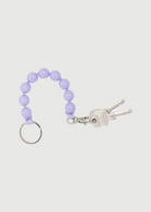 This beaded keychain with elastic band features threaded wooden beads for a fun and versatile accessory that can also double as a bag charm or bracelet.