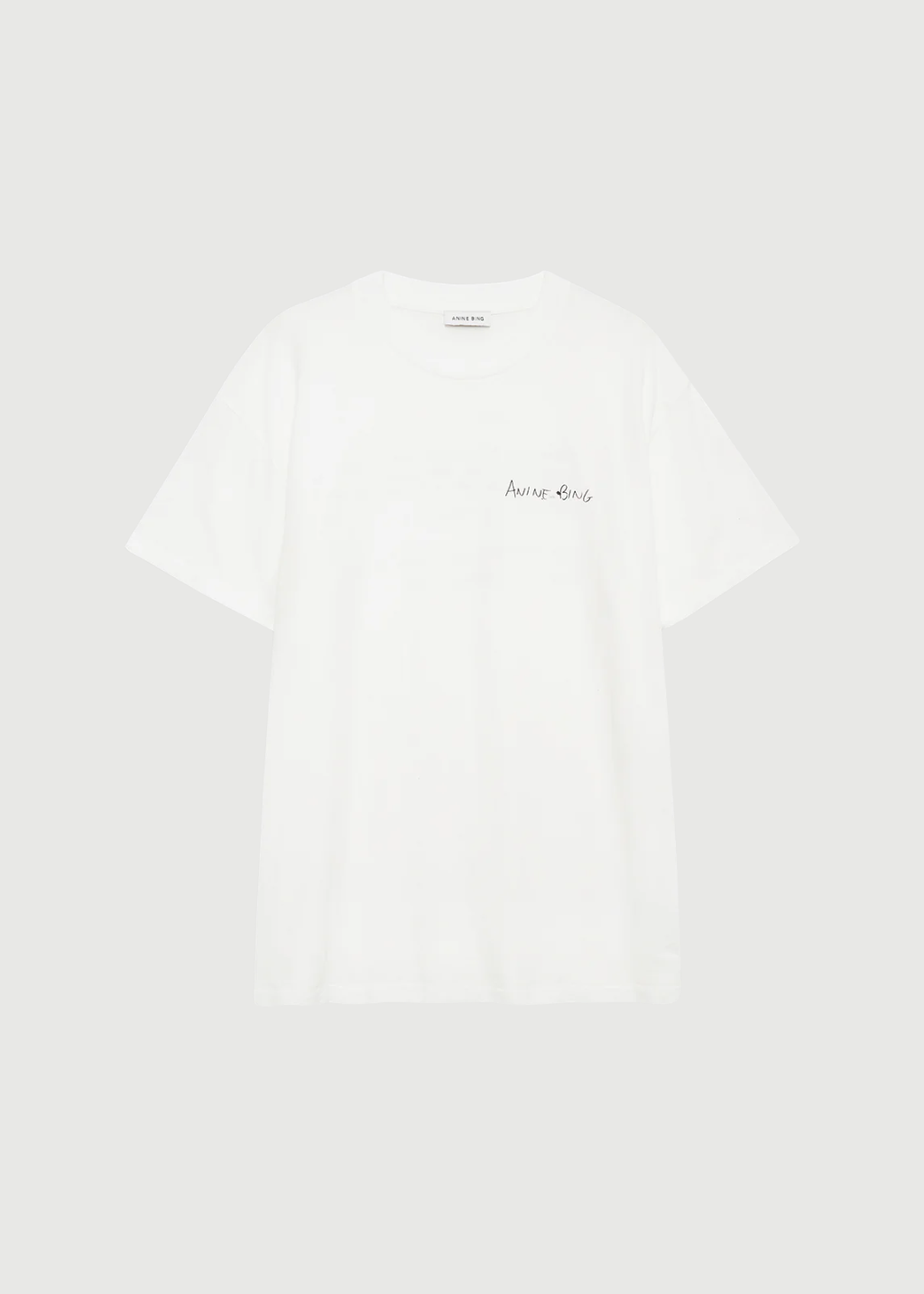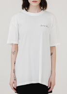 The Walker Tee Lyrics is crafted from lightweight 100% cotton jersey in a soft ivory wash and features a handwritten graphic at the left chest, with bold “Sin” lyrics from Anine’s album THERAPY screen printed across the back. Designed with an oversized fit, it blends everyday comfort with a personal, artistic edge.
