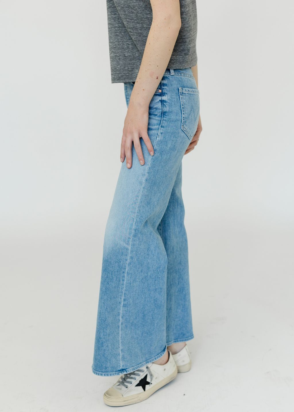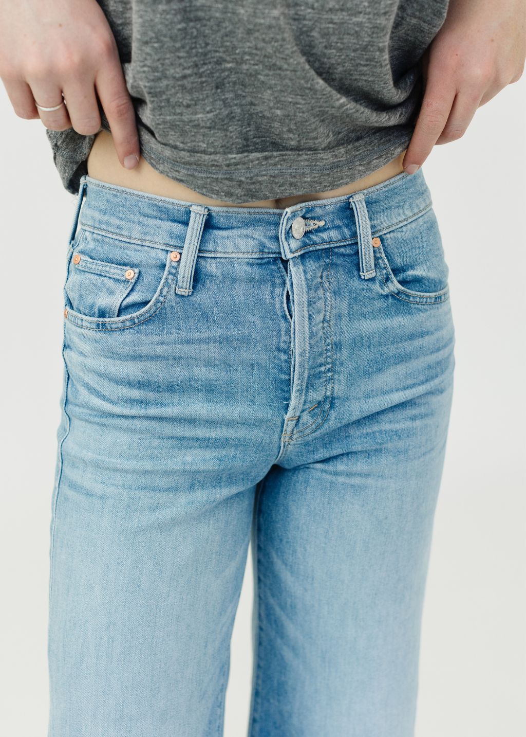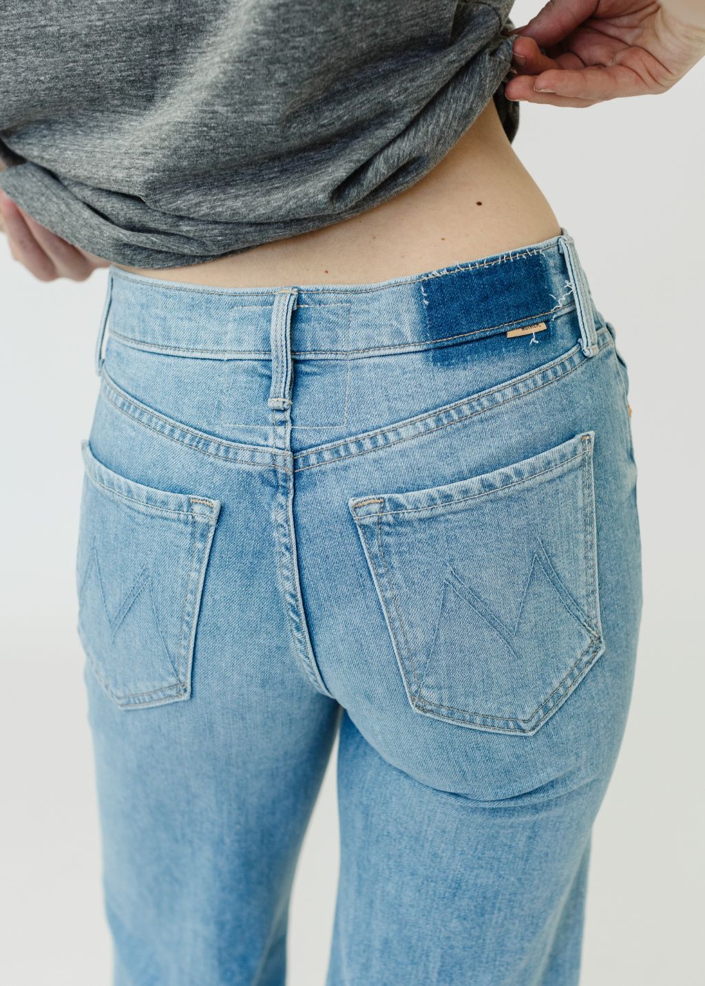 Add some serious intuition to your wardrobe with the Mother Denim Tomcat Roller Skimp in Puzzled. This high-waisted, wide leg design features a button fly and clean hem, all made from a blend of recycled-cotton stretch denim. The mid-blue wash with whiskering and fading at the knee adds a touch of character that will have you rolling in style.