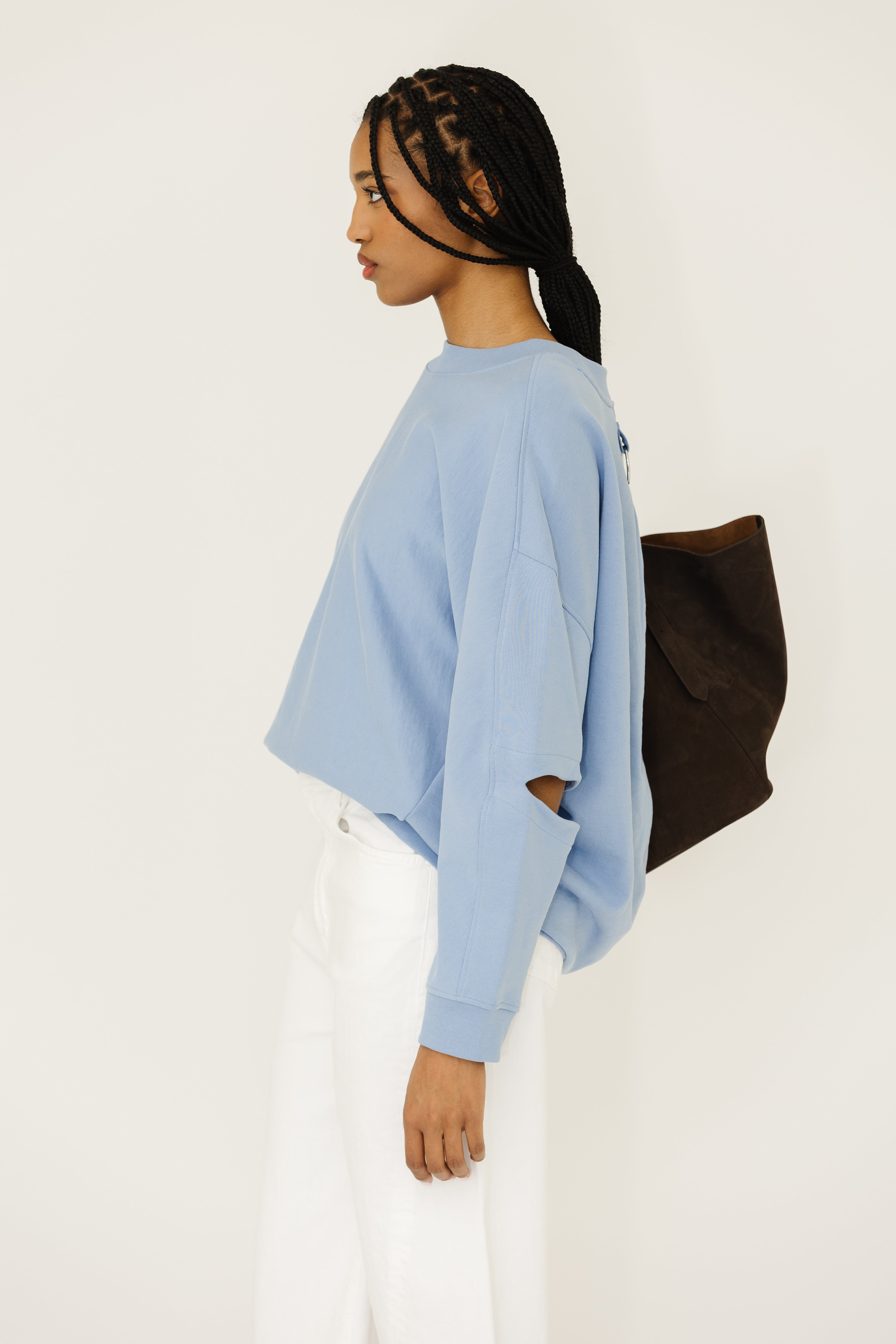 Tibi Cocoon Crewneck Sweatshirt in Light Blue