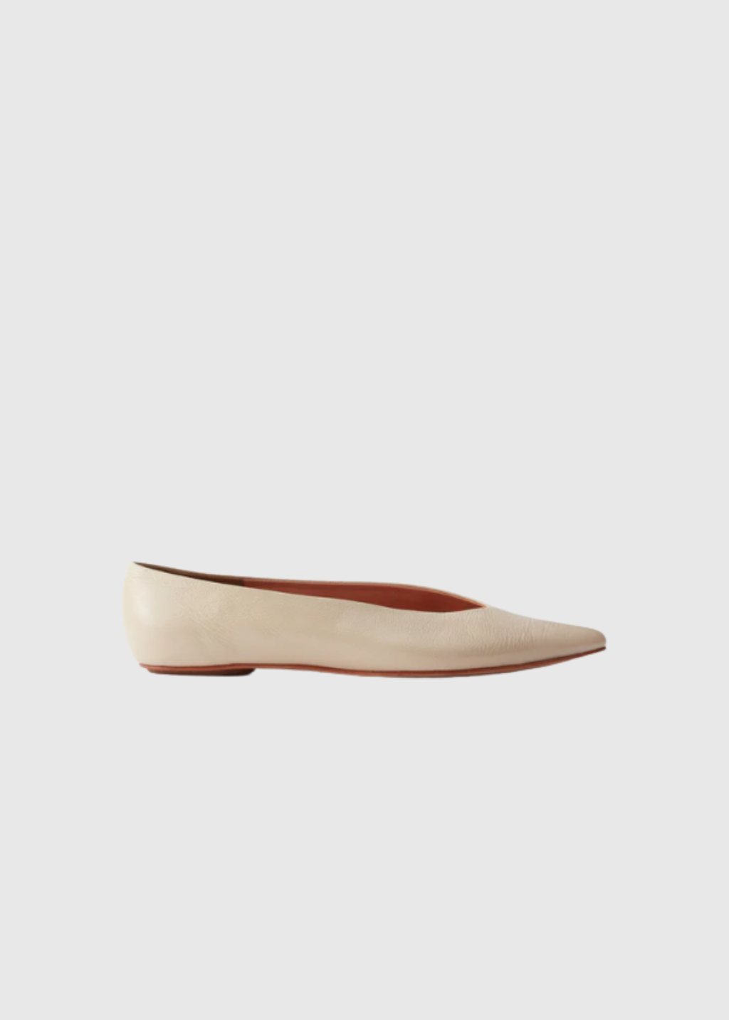 Crafted in supple leather with a subtle crinkled patent finish, this ballet flat offers a modern take on a timeless silhouette. The pointed toe elongates the line of the foot, while the low-cut almond vamp creates a flattering, barely-there shape. Designed with a seamless upper and an easy slip-on construction, it feels as streamlined as it looks.