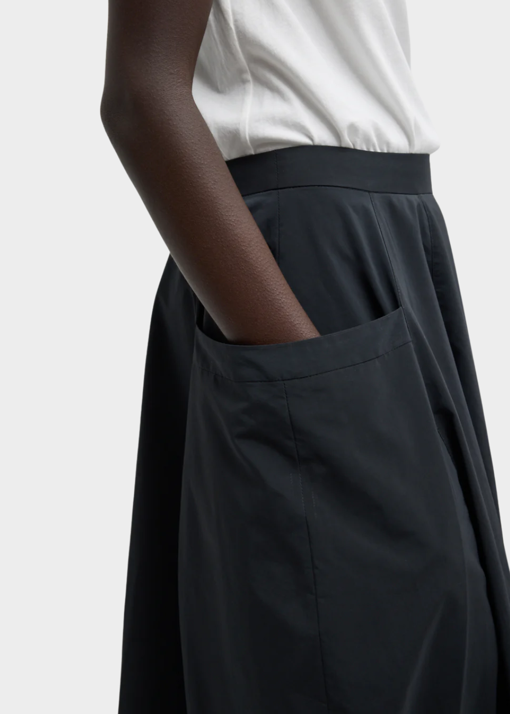 Designed for everyday, easy-yet-polished living, the Nylon Lantern Skirt is crafted from a lightweight Japanese compact nylon with a smooth hand feel and built-in durability. Its sculptural, lantern-shaped silhouette is balanced with thoughtful functionality, featuring oversized side pockets and a clean back zip closure. Style it with a fitted tee, crisp shirting, or soft knitwear to emphasize the shape, or pair it with tailored outerwear to ground the volume and keep the look modern.