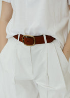 A great medium-width belt, the CLASICO will go perfectly with every outfit. Genuine leather and simple brass hardware make for the ultimate closet staple.