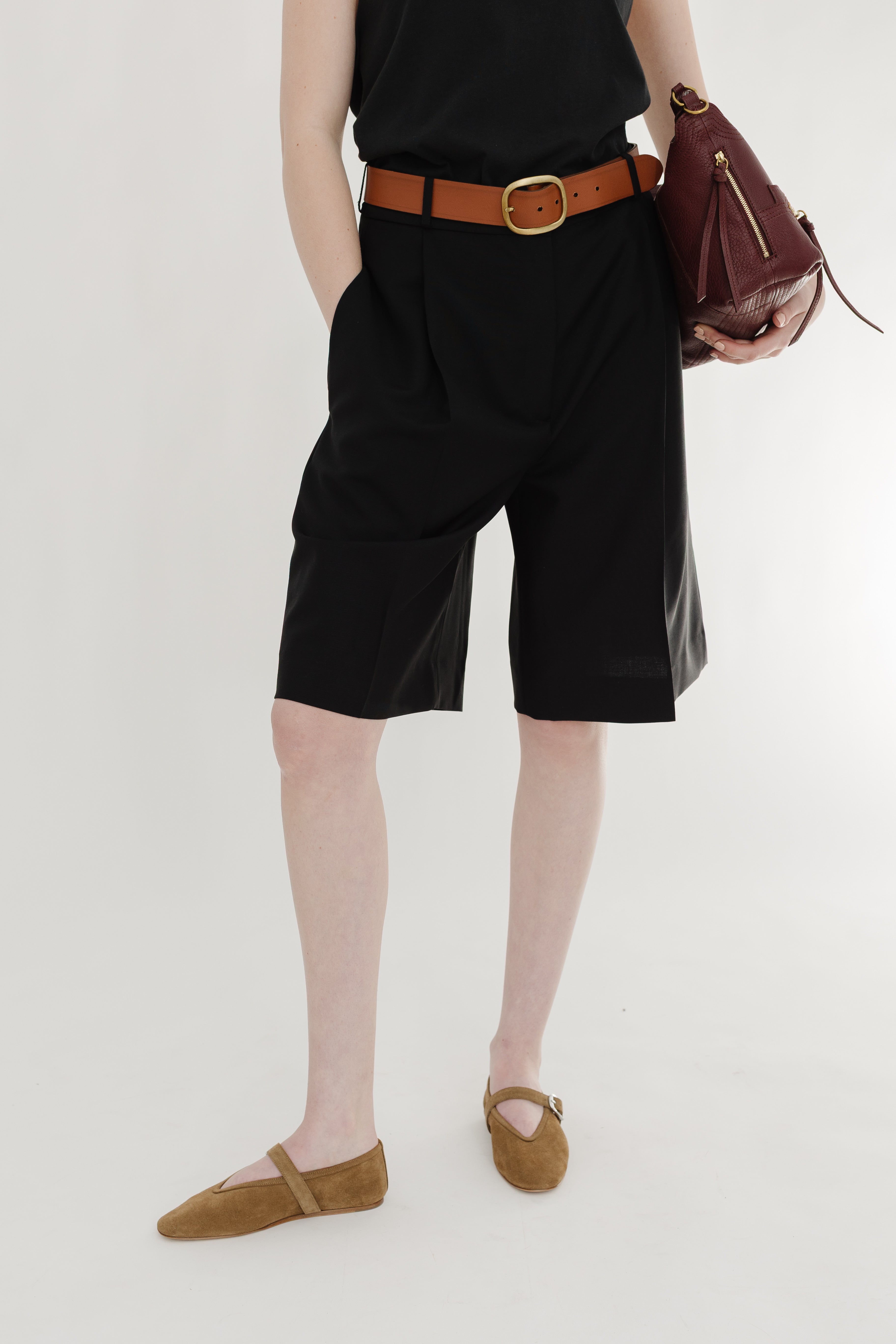 Rohe's tailored shorts are designed with a clean, structured sensibility. Their single front pleat and side pockets lend subtle refinement, while the knee-length cut creates a balanced, modern silhouette. Crafted from a lightweight wool–mohair blend, the fabric offers natural breathability with a crisp hand that holds its shape. Polished yet easy.