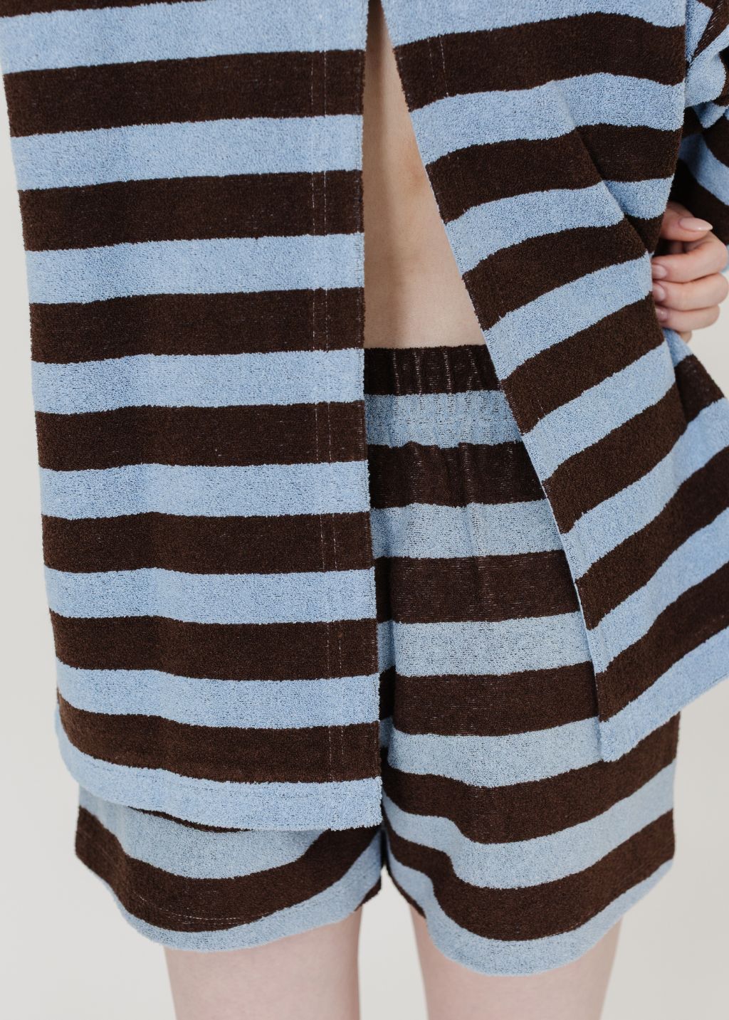 Introducing Tibi's Bonded Dry Loop Terry Short Shorts. Made with bonded dry loop terry, these structured yet relaxed shorts hold their shape. With an elastic waistband for comfort, they're perfect for everyday wear. From the beach, to a night out paired with the matching Easy T, these shorts are a summer must-have.