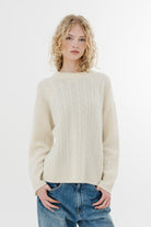 Alex Mill Cashmere Crewneck Cable Sweater in Cloud