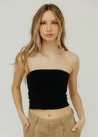 The Éterne Amina Tube Top in Black. Get ready to make a statement with its flattering fit and elegant design.