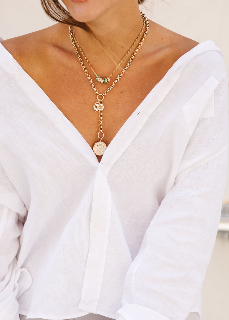 Swing into style with our Felicidad Lariat Rolo Chain Necklace! This playful 14k gold treasure from Italy rocks a fun y-drop design that'll make your outfit pop. Hang your favorite pendants from either ring for a different look every day.