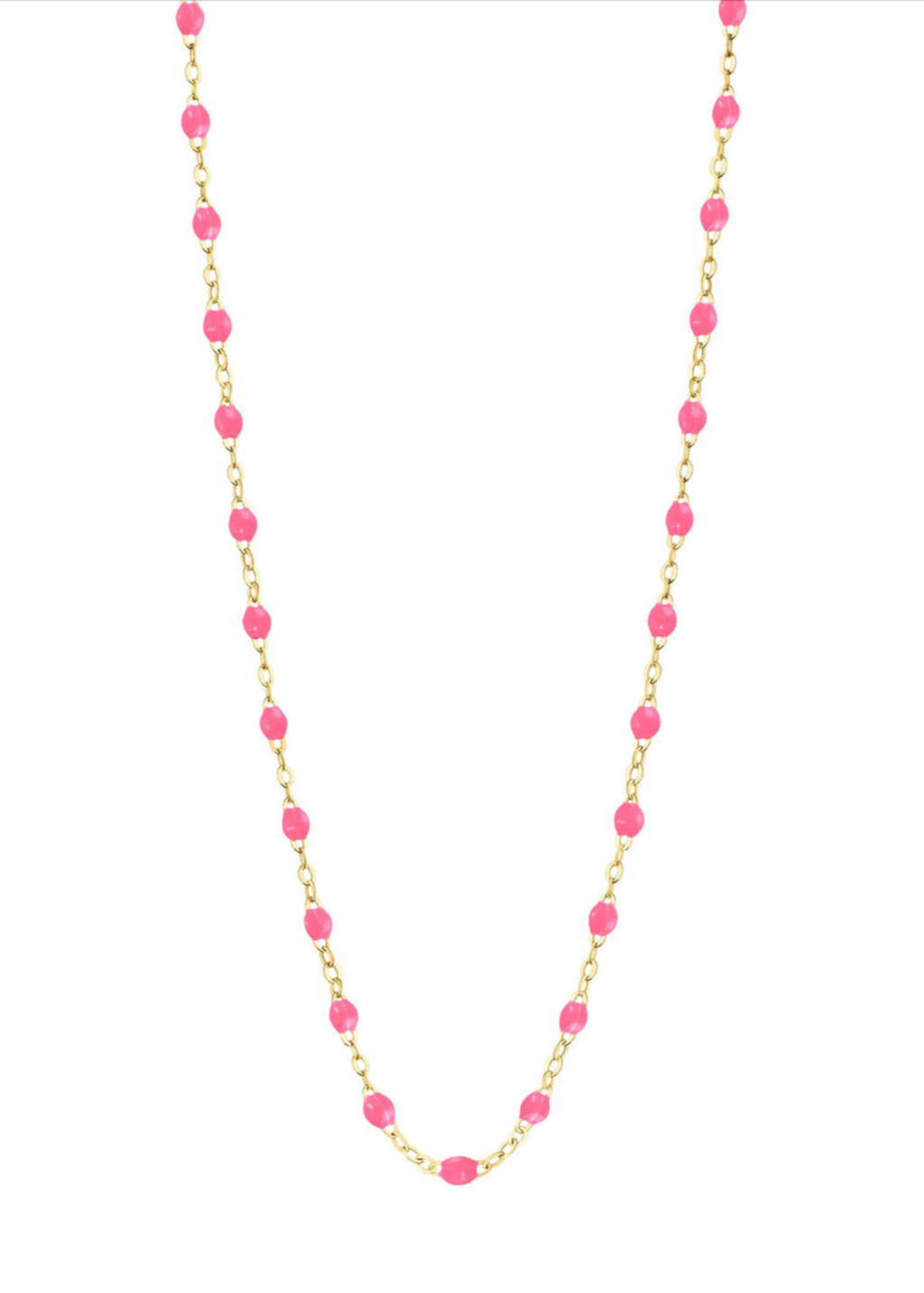 The Classic Gigi Necklace in pink features 18 karat yellow gold and unique Scarab jewels for a simple, everyday look. Layer with multiple colors, pair with a Gigi bracelet or add a pendant to create a more unique piece.