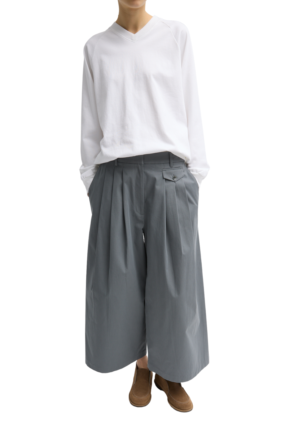Tibi Bio Twill Triple Pleat Cropped Pant in Grey