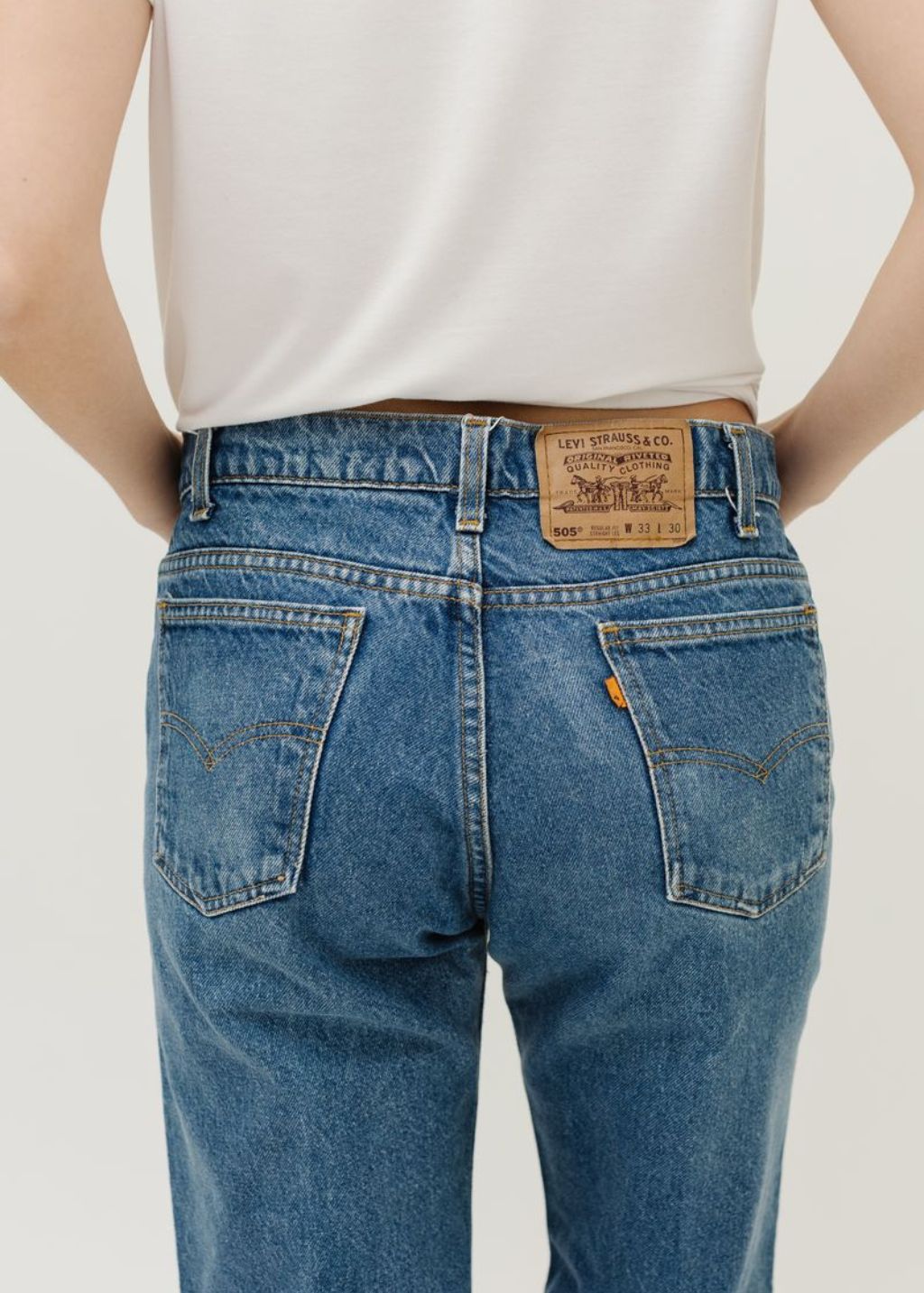 For a laid-back and effortlessly cool vibe, we like to wear our Vintage Levi's loose and baggy. To find your perfect fit, compare our measurements to your go-to denim in your wardrobe. And if they're not quite spot-on, a belt can easily customize them to your liking.