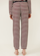 New this season, the Brandi pant is crafted from ultra-soft striped cotton jersey for all-day comfort. Inspired by vintage lounge silhouettes, it features a contrast waistband with a hidden drawstring, convenient side seam pockets, and elasticized ankle cuffs for an easy, relaxed fit.